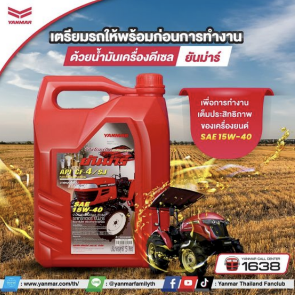 เตรียมรถให้พร้อมก่อนการทำงาน ด้วยน้ำมันเครื่องดีเซล SAE 15W-40 มาตรฐานญี่ปุ่น จากยันม่าร์ เพื่อการทำงานเต็มประสิทธิภาพของเครื่องยนต์ . 🚜เป็นน้ำมันเครื่องเกรดรวม (Multigrade) ที่มีดัชนีความหนืดสูง 🚜ป้องกันการสึกหรอ และการกัดกร่อนของเครื่องยนต์ได้ดียิ่งขึ้น 🚜ยืดอายุการใช้งานของเครื่องยนต์ได้ยาวนา 🚜ใช้เติมระบบเครื่องยนต์ เพื่อหล่อลื่นระบบเครื่องยนตร์ 🚜ใช้กับรถไถยันม่าร์ YANMAR ทุกรุ่น . 💬 สอบถามรายละเอียดเพิ่มเติมได้ที่ผู้แทนจำหน่ายยันม่าร์ใกล้บ้าน ***เงื่อนไขเป็นไปตามที่บริษัทกำหนด ————————————– 👨🌾 ติดตามข่าวสารยันม่าร์ได้ที่ Website : https://www.yanmar.com/th/ Facebook : https://bit.ly/3HH56vc Youtube : https://bit.ly/3nEeIin TikTok : https://vt.tiktok.com/ZSePbJTdd/ ☎ Call Center : 1638 . #Yanmarthailandfanclub #yanmarthailand #ยันม่าร์ #รถแทรกเตอร์
