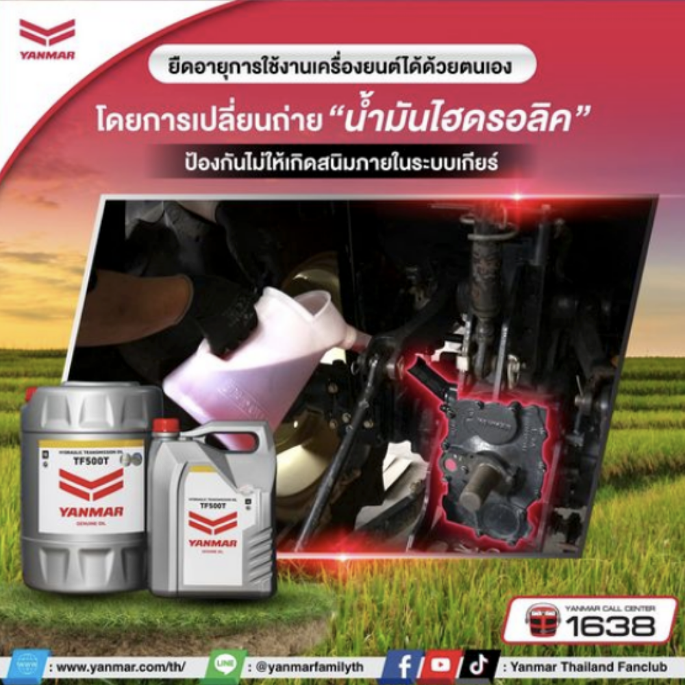 ยืดอายุการใช้งานเครื่องยนต์ได้ด้วยตนเอง โดยการเปลี่ยนถ่ายน้ำมันไฮดรอลิค ป้องกันไม่ให้เกิดสนิมภายในระบบเกียร์ . น้ำมันไฮดรอลิคเกรดพรีเมี่ยมของยันม่าร์ ผลิตจากน้ำมันปิโตรเลี่ยมคุณภาพสูง เหมาะสำหรับใช้ในระบบส่งกำลัง, ระบบไฮดรอลิค, ระบบเกียร์, ระบบเบรกแบบเปียกในแทรกเตอร์, รถเกี่ยวนวดข้าวและรถดำนา . ✔️ให้การหล่อลื่น การระบายความร้อน และป้องกันไม่ให้เกิดสนิมภายในระบบเกียร์ ✔️สามารถูใช้เป็นน้ำมันไฮดรอลิกสำหรับระบบไฮดรอลิกได้ ✔️การใช้นำมันยันม่าร์ของแท้ จะช่วยให้เครื่องยนต์ของท่านทำงานได้เต็มประสิทธิภาพ! . วิธีตรวจสอบช่องตรวจสอบ 1.ตรวจสอบระดับน้ำมันจากช่องตรวจสอบ 2.หากระดับน้ำมันอยู่ระหว่างระดับขีดูจำกัดบนและล่าง แสดงว่ามีปริมาณเพียงพอ 3.หากมีปริมาณไม่เพียงพอ ให้เติมน้ำมันจนสามารถเห็นระดับน้ำมันได้จากช่องตรวจสอบ . ทำการซ่อมบำรุงหรือเปลี่ยนชิ้นส่วนหาก… 👉 เปลี่ยนน้ำมันหลังจากเริ่มใช้งานครั้งแรก 50 ชั่วโมง จากนั้นเปลี่ยนทุกๆ 600 ชั่วโมง 👉 เปลี่ยนน้ำมันหากมีสิ่งปนเปื้อนหรือมีความหนืดต่ำ . ปัญหาที่อาจเกิดขึ้นทำให้ระบบส่งกำลังหรือระบบไฮดรอลิกทำงานผิดปกติ . 💬 สอบถามรายละเอียดเพิ่มเติมได้ที่ผู้แทนจำหน่ายยันม่าร์ใกล้บ้าน ***เงื่อนไขเป็นไปตามที่บริษัทกำหนด ————————————– 👨🌾 ติดตามข่าวสารยันม่าร์ได้ที่ Website : https://www.yanmar.com/th/ Facebook : https://bit.ly/3HH56vc Youtube : https://bit.ly/3nEeIin TikTok […]