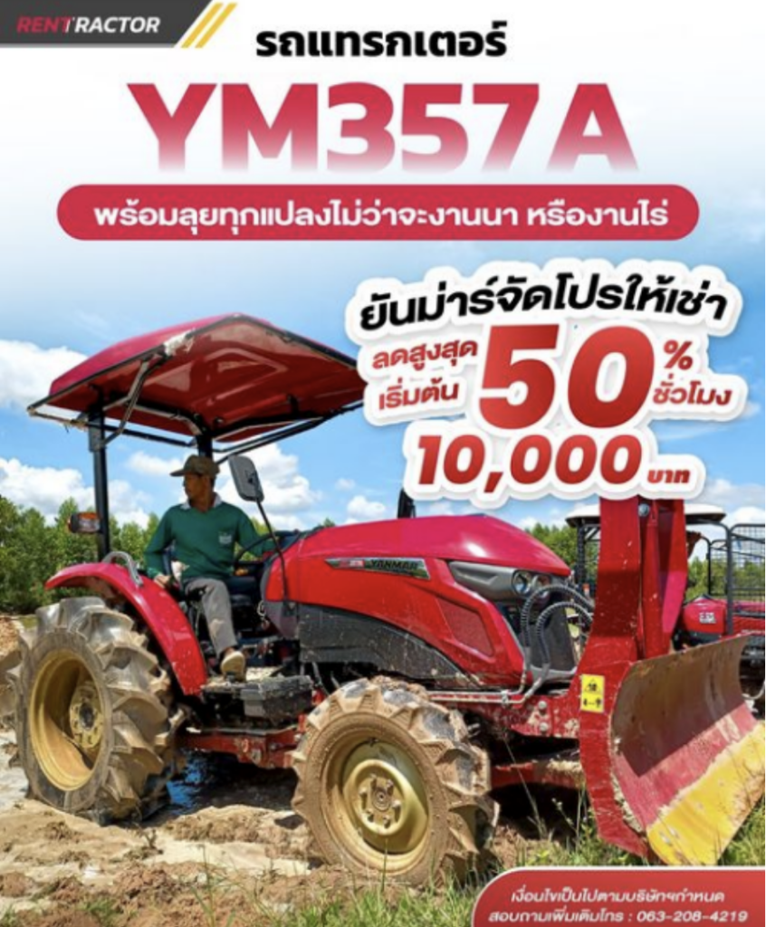 🚜รถแทรกเตอร์ YM357A จากยันม่าร์ พร้อมลุยทุกแปลง เอาอยู่ทุกงาน🚜 . มาพร้อมกับเทคโนโลยีที่ทันสมัย ล้อใหญ่ขึ้น แรงมากขึ้น สามารถทำงานได้หลากหลาย ไม่ว่าจะงานหรืองานไร่ . โปรโมชั่นพิเศษจากยันม่าร์ เช่าครั้งแรกลดสูงสุด 50% เริ่มต้นเพียง 10,000.- 🥳🥳 . โปรโมชั่นพิเศษประจำเดือน 👉โปรฯ 1 : เอาใจสำหรับผู้เช่าครั้งแรก ลด 50% 10 วัน หรือ 50 ชม. ราคา 10,000.-. 👉โปรฯ 2 : โปรฯใช้ได้ไม่จำกัด 10 วัน เหมาๆ ราคา 20,000.-. 👉โปรฯ 3 : โปรฯสำหรับผู้รับเหมา 30 วัน หรือ 200 ชม. ราคา 40,000.-. 👉โปรฯ 4 […]