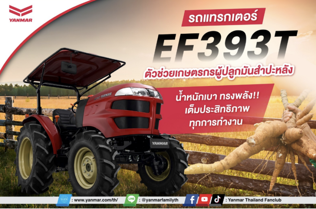 🚜รถแทรกเตอร์ EF393T ตัวช่วยเกษตรกรผู้ปลูกมันสำปะหลัง น้ำหนักเบา ทรงพลัง เต็มประสิทธิภาพทุกการทำงาน🚜 . ด้วยเครื่องยนต์ขนาดเล็ก น้ำหนักเบา แต่มีคุณภาพสูง ที่ได้รับการพัฒนาอย่างต่อเนื่อง เพื่อให้ตัวรถแทรกเตอร์มีประสิทธิภาพสูง ทำงานได้ดี ทั้งในนาหล่มและนาแห้ง . ✔️ผานยกร่อง YS410RGK ช่วยให้การยกร่องหลังพรวนดินเป็นเรื่องง่าย ผานยกร่องจะดันดินเข้าด้านในด้วยจานผานที่แข็งแรง ทำให้ยกร่องดินได้ดี – จานผานมีความแข็งแรงสูง – ทำงานด้วยความเร็วสูงมีประสิทธิภาพสูง – ขนาดร่องปรับด้วยการปรับตั้งมุม และความกว้างของจานผาน . ✔️ผานขุดมัน Y2230CDK เครื่องขุดมันสำปะหลังยันม่าร์ แบบลาก สามารถใช้งานได้กับรถแทรกเตอร์ที่มาแรงม้าน้อย แข็งแกร่ง ทนทาน – แข็งแรง ทนทาน ใช้งานได้ยาวนาน – สามารถปรับตั้งการขุดให้เหมาะสมกับลักษณะพื้นที่ทำงาน – ขุดมันได้ต่อเนื่อง รวดเร็ว โดยไม่ทำให้มันสำปะหลังสูญเสียน้ำหนัก . ✔️ผานบุกเบิก Y226PDA1 ใช้สำหรับพรวนดิน พลิกหน้าดิน เพื่อเตรียมดินสำหรับการเพาะปลูกพืชไร่ และพืชชนิดอื่นๆ . 💬 สอบถามรายละเอียดเพิ่มเติมได้ที่ผู้แทนจำหน่ายยันม่าร์ใกล้บ้าน […]