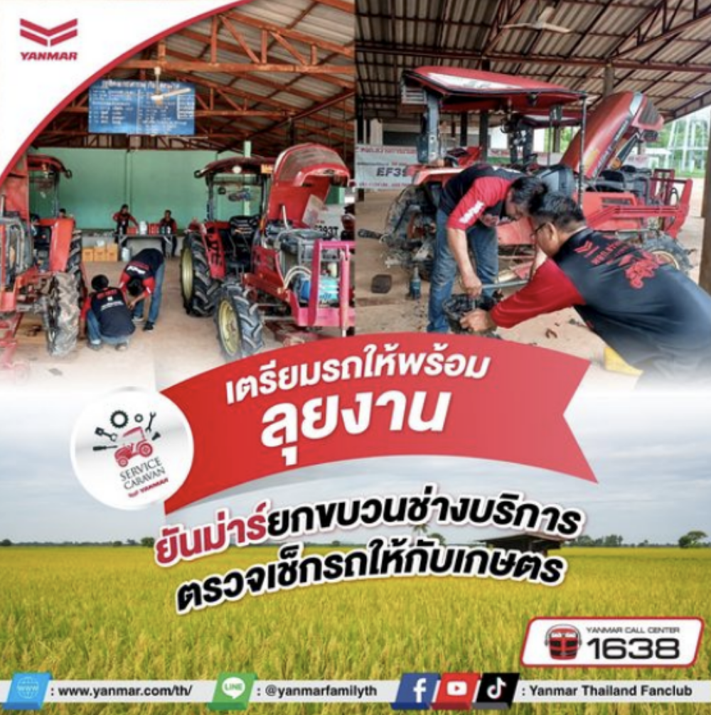 เตรียมรถให้พร้อมลุยงาน ยันม่าร์ยกขบวนช่างบริการ ตรวจเช็กรถให้กับเกษตรกรไทย 👨🌾👨🌾 . เพราะรถแทรกเตอร์ ถือเป็นหัวใจสำคัญในการทำเกษตร เมื่อมีการใช้งานหนักๆ เราควรหมั่นดูแลรักษา และเช็คเครื่องยนต์ให้พร้อมใช้งานอยู่เสมอ . 💬 สอบถามรายละเอียดเพิ่มเติมได้ที่ผู้แทนจำหน่ายยันม่าร์ใกล้บ้าน ***เงื่อนไขเป็นไปตามที่บริษัทกำหนด ————————————– 👨🌾 ติดตามข่าวสารยันม่าร์ได้ที่ Website : https://www.yanmar.com/th/ Facebook : https://bit.ly/3HH56vc Youtube : https://bit.ly/3nEeIin TikTok : https://vt.tiktok.com/ZSePbJTdd/ ☎ Call Center : 1638 . #Yanmarthailandfanclub #yanmarthailand #ยันม่าร์ #รถแทรกเตอร์