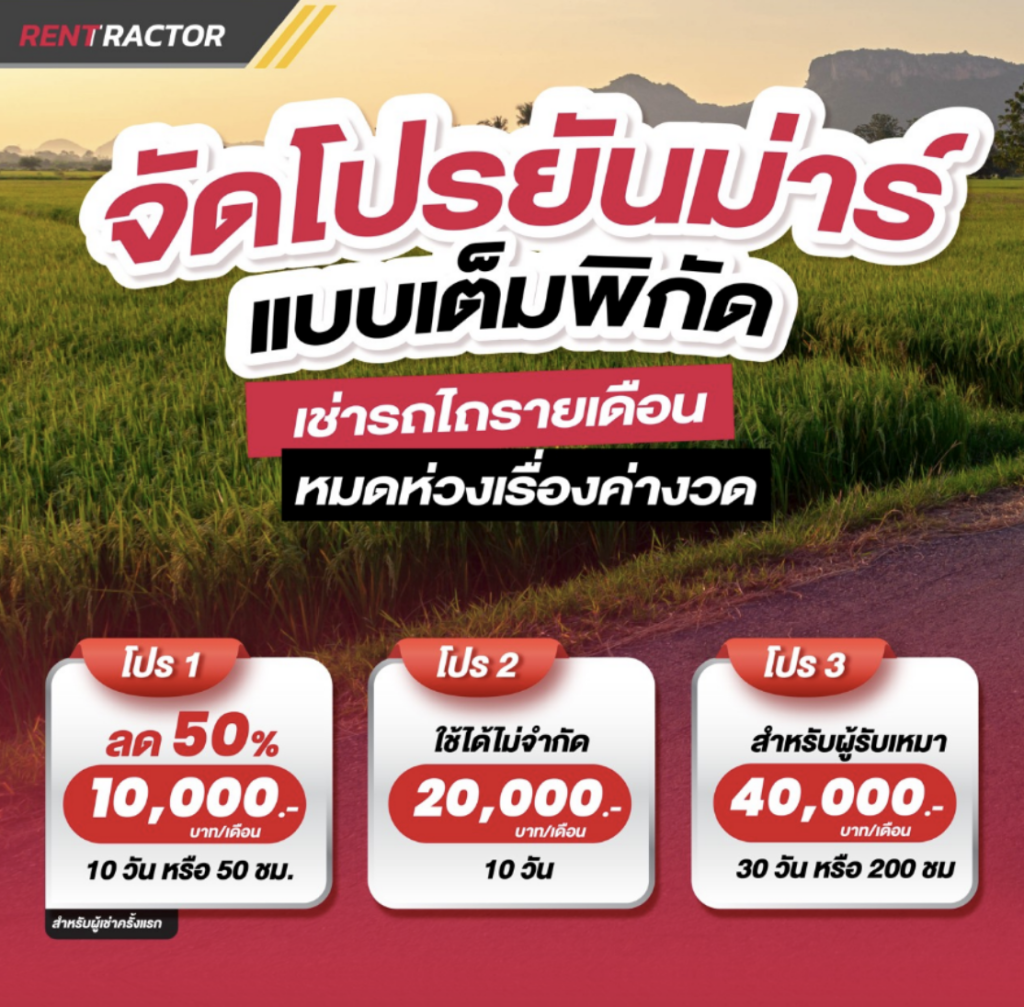 ที่สุดของพลังความแข็งแกร่ง พร้อมให้เช่าลุยงานได้ทุกที่🚜 . ให้ทุกงานเกษตรกรรมเป็นเรื่องง่าย ด้วยรถแทรกเตอร์ YM357A จากยันม่าร์ ทรงพลัง แข็งแกร่ง ทนทาน ได้งานคุณภาพ 👍👍 . โปรโมชั่นพิเศษจากยันม่าร์ เช่าครั้งแรกลดสูงสุด 50% เริ่มต้นเพียง 10,000.- 🥳🥳 . โปรโมชั่นพิเศษประจำเดือน 👉โปรฯ 1 : เอาใจสำหรับผู้เช่าครั้งแรก ลด 50% 10 วัน หรือ 50 ชม. ราคา 10,000.-. 👉โปรฯ 2 : โปรฯใช้ได้ไม่จำกัด 10 วัน เหมาๆ ราคา 20,000.-. 👉โปรฯ 3 : โปรฯสำหรับผู้รับเหมา 30 วัน หรือ 200 ชม. ราคา 40,000.-. 👉โปรฯ […]